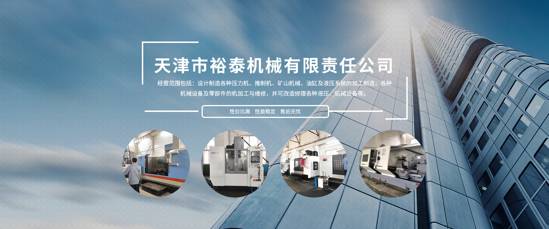 天津市裕泰機械有限責任公司成立于1998年,多次被區(qū)、鎮(zhèn)政府評為文明企業(yè),公司占地面積7500平方米,四個生產(chǎn)車間30多臺配套生產(chǎn)設備,經(jīng)營范圍包括:設計制造各種壓力機、推制機、礦山機械、油缸及液壓系統(tǒng)的加工制造;各種機械設備及零部件的機加工與維修,并可改造修理各種液壓、機械設備等。經(jīng)過不斷的努力創(chuàng)新我公司成為中國第一重型機械廠、第二重型機械廠、上海重型機械廠、首鋼、鞍鋼、南鋼、北京冶金自動化設計院、北京電力設備總公司等多家公司的加工基地,經(jīng)合作我們產(chǎn)品也銷往德國、意大利、美國、日本、印尼等國家和地區(qū),并已在一些國家重點項目中使用。